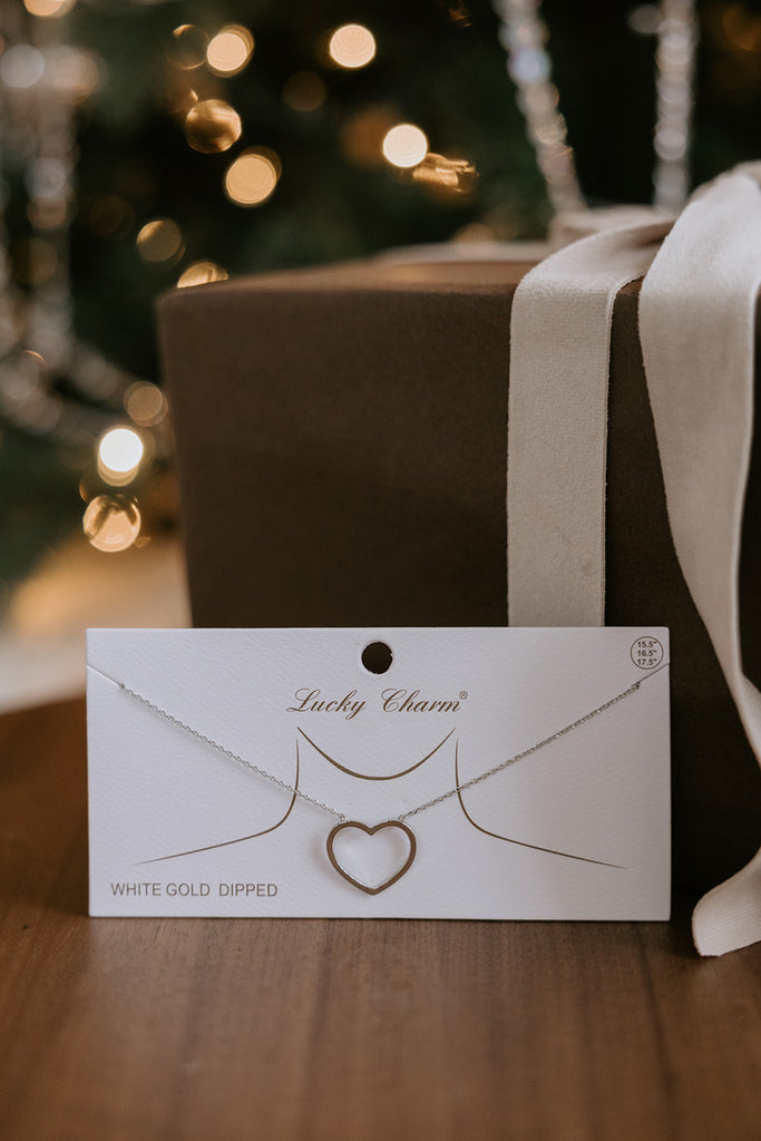 This white gold–dipped open heart necklace is a delicate, elegant piece designed for everyday wear. Featuring a minimalist heart pendant on a fine chain, it adds just the right touch of shine—perfect worn alone or layered. A beautiful holiday stocking stuffer that feels classic, thoughtful, and easy to gift.