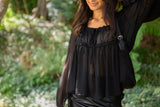 Sheer Long Sleeve Blouse - Black
