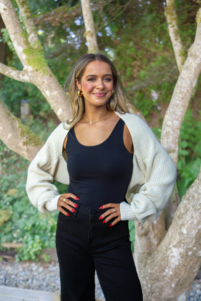 Bold in texture, effortless in attitude. This chunky knit bolero is the layering piece you didn’t know you needed - cropped just right, with oversized sleeves and rich, tactile warmth. Throw it over a slip dress or pair it with a tank and high-rise denim for that perfectly undone, cozy-meets-cool look.