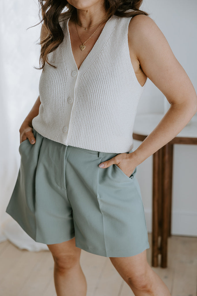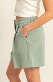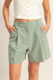 Our Classic Dress Shorts in a soft sage hue brings a fresh take to warm-weather style. Tailored with clean lines and a flattering mid-rise fit, these shorts offer a refined silhouette that transitions seamlessly from casual brunches to outdoor events. Crafted from a breathable, slightly structured fabric with just the right amount of stretch, they promise all-day comfort without compromising on style. Pair with a crisp blouse or a relaxed tee for a look that’s equal parts modern and timeless.