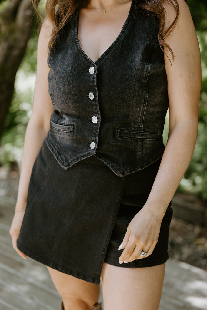 Denim Vest - Stretchy - Black
