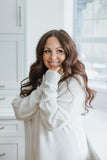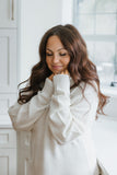 Long Knit Turtleneck Sweater Dress - Cream