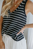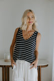 Lightweight Striped VNeck Knit Tank - Navy