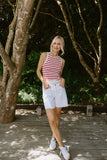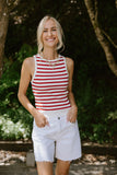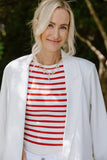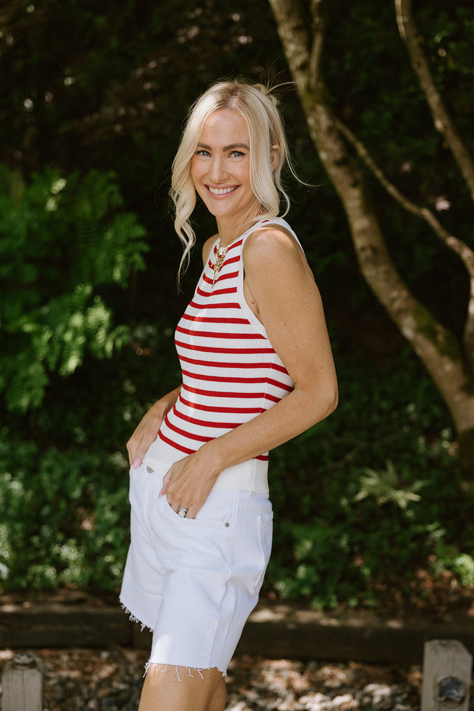 Say hello to effortless summer vibes with this red and white striped thin knit tank! With its soft, breathable fabric and classic nautical-inspired stripes, this top is made for sunshine-filled days. The slim fit and lightweight knit give it just the right touch of cozy-meets-cute, perfect for pairing with denim shorts, skirts, or tossed over your swimsuit. Fits true to size