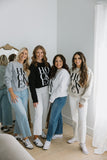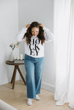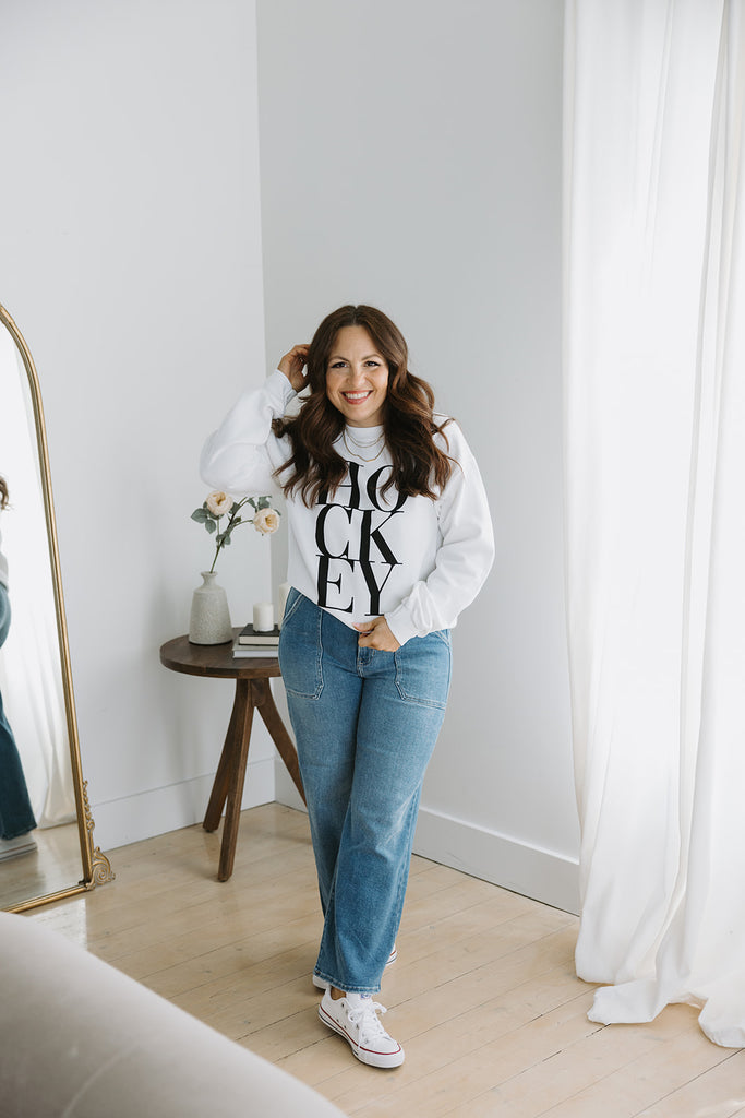 Your staple graphic crewneck - with a touch of Canada's national sport - hockey! The classic font and cute slogan makes this piece stand out among the rest. Pair this crewneck with distressed denim and sneakers for those errand days, or for those cold days at the rink.