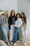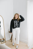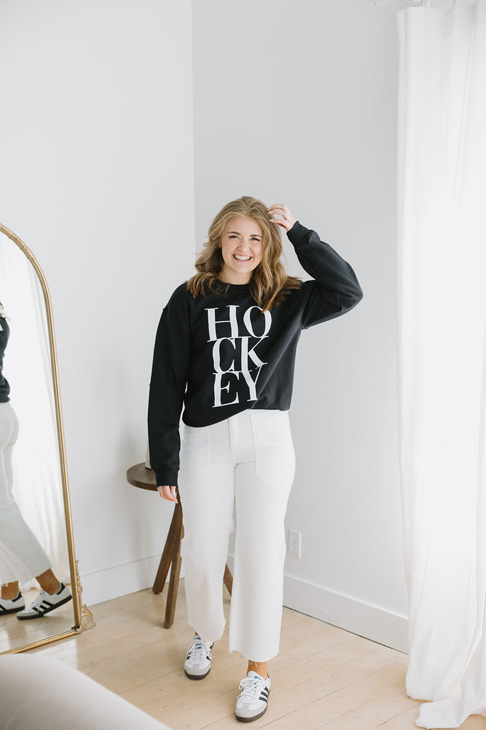 Your staple graphic crewneck - with a touch of Canada's national sport - hockey! The classic font and cute slogan makes this piece stand out among the rest. Pair this crewneck with distressed denim and sneakers for those errand days, or for those cold days at the rink.