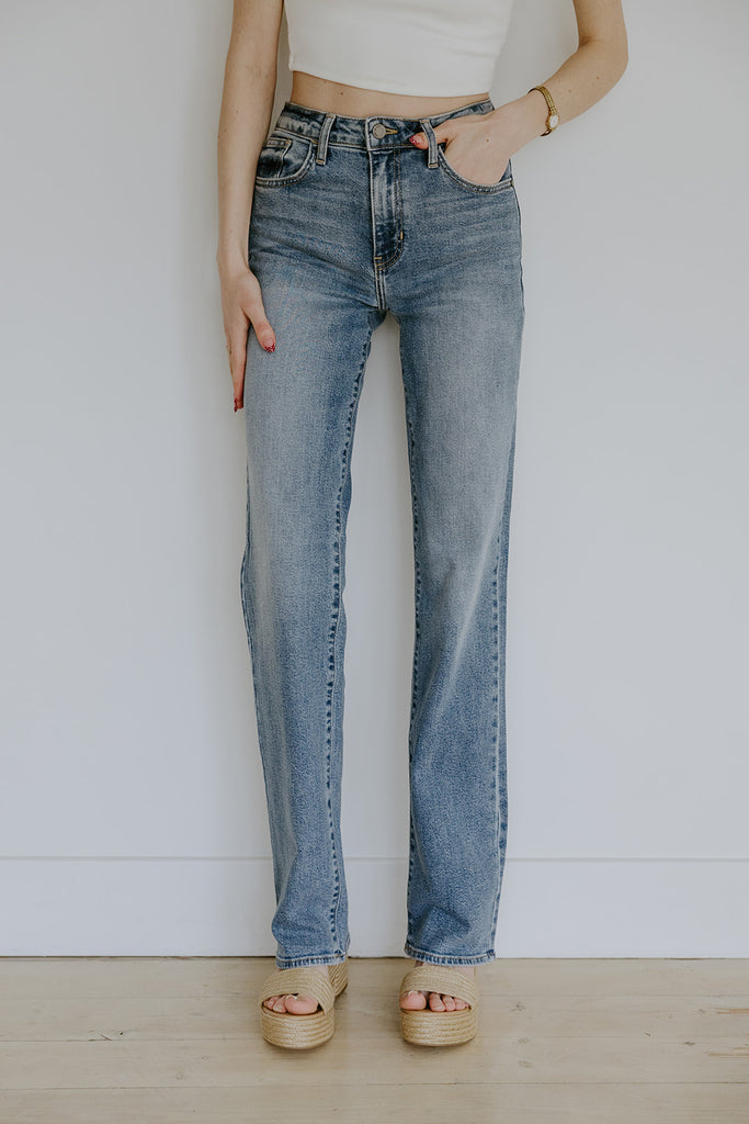 This one is for the tall girls. Our classic long length straight denim is designed for an effortless, flattering fit. It features a classic medium wash that works with everything and will take you through spring and summer and into fall. Cut to sit just right through the leg, it offers a clean, timeless silhouette with a relaxed feel. Easy to dress up or down, this pair is made for everyday wear and endless styling.