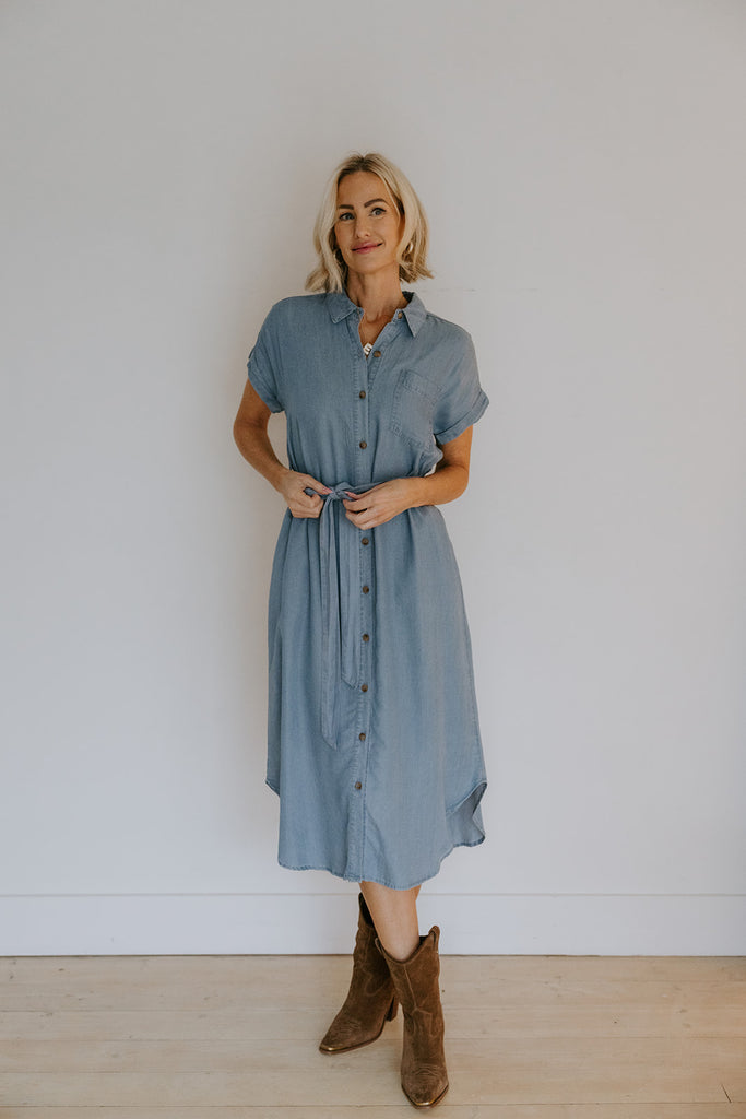 Chambray Button Down Shirt Dress