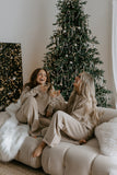 The relaxed-fit sweater drapes beautifully, giving you that comfy, slightly oversized feel, while the matching pants feature a drawstring waist and roomy pockets for everyday ease. Whether you're curled up at home, running errands, or hosting a holiday morning brunch, this set keeps you looking polished and feeling incredible.