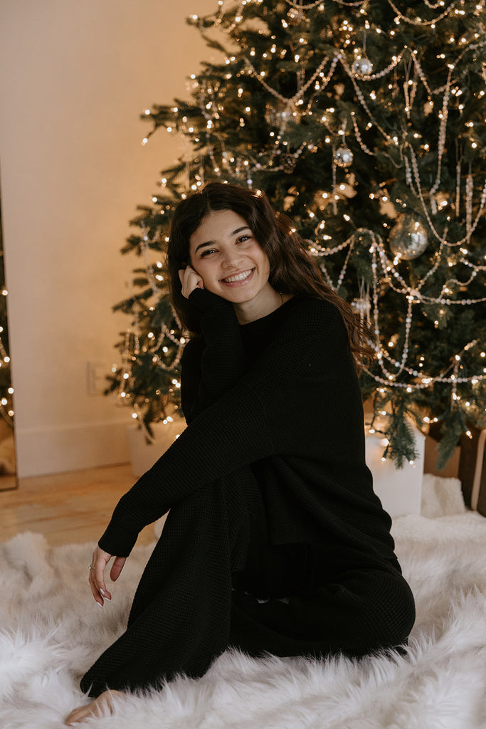 Celebrate the season in comfort and style with this waffle-textured lounge set. Soft, cozy, and perfect for chilly mornings or relaxing evenings by the fire, it pairs effortlessly with hot cocoa and holiday vibes. The textured fabric adds a playful, festive touch, making it an ideal set for cozy gatherings, gifting, or simply lounging in seasonal style.