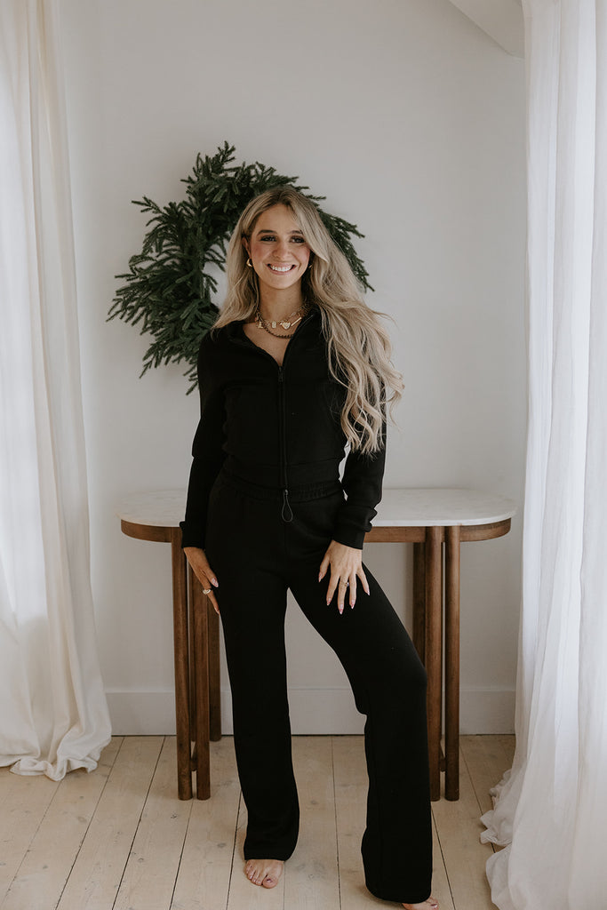 Lightweight Zip Up Hoodie & Pant Set - Black