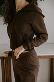 Meet your new everyday cozy uniform. This cocoa-brown lounge set blends softness, stretch, and an effortlessly sleek silhouette, making it perfect for everything from slow mornings at home to casual coffee runs.