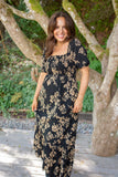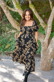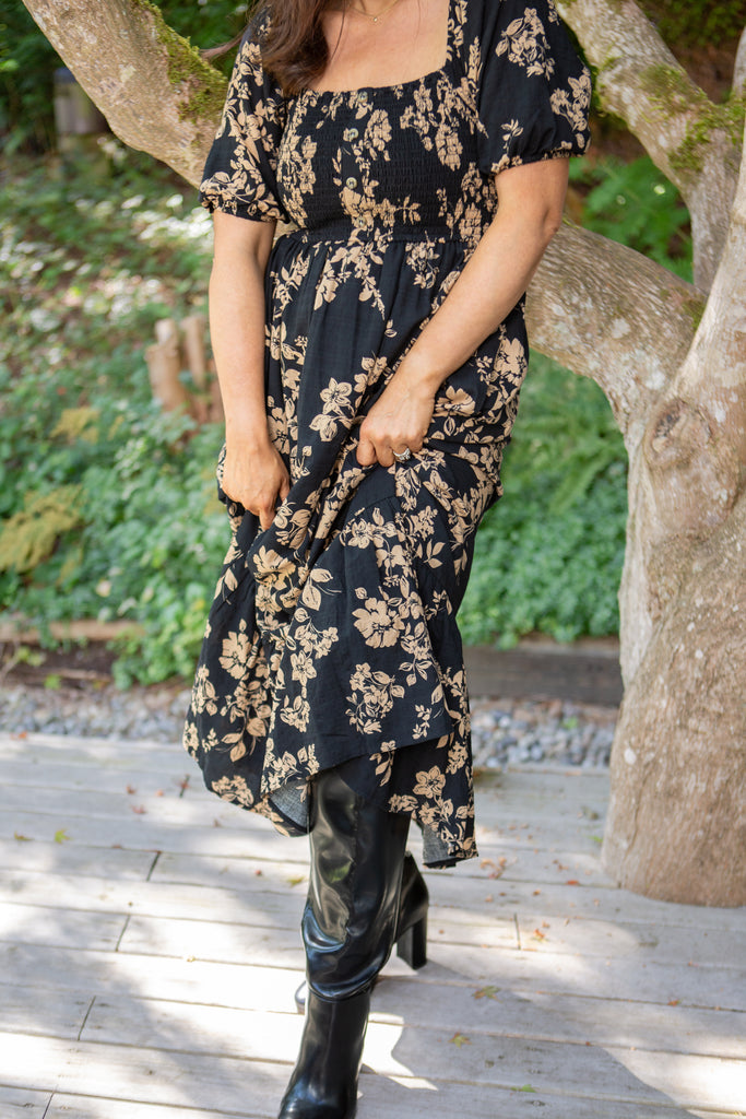 Framed by voluminous sleeves and grounded by a structured neckline, this midi dress walks the line between softness and statement. The square neck adds a feminine touch, while gathered balloon sleeves bring a romantic ease. Finished with a flowing skirt that moves with you, it’s a wear-anywhere piece with quietly bold energy.