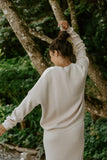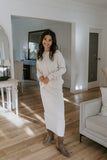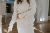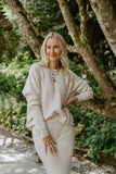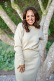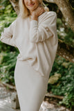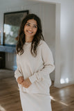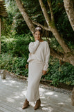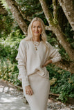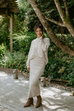The relaxed-fit sweater pairs effortlessly with the high-waisted midi skirt, creating a sleek, put-together look with zero effort. Whether you're heading to brunch, the office, or simply lounging in style, this set transitions seamlessly from day to night.