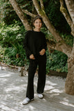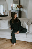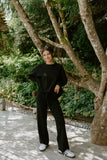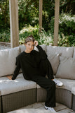 The relaxed-fit sweater pairs effortlessly with the high-waisted wide-leg pants, creating a sleek, put-together look with zero effort. Whether you're running errands, traveling, or simply lounging in style, this set transitions seamlessly for any activity.