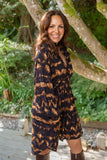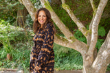 Printed Bronze & Navy Dress