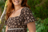 Soft, flowy, and effortlessly sweet - the brown floral babydoll blends vintage charm with modern ease. Featuring a relaxed, empire waist silhouette and delicate floral print, it flatters the figure while offering all-day comfort. Lightweight fabric and white trim create gentle movement, perfect for wearing to date nights, get-togethers and beyond.