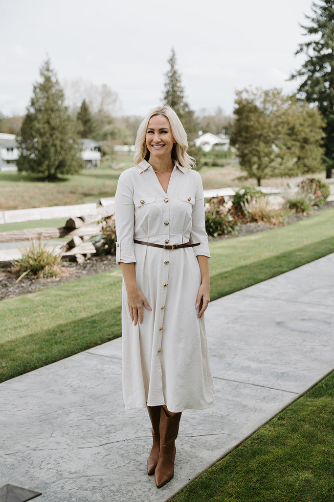 This button up shirt dress is the perfect item for those 'not sure what to wear' kind of occasions. We love this style because it is equal parts flattering and unique. Whether you dress it more formally with heels for the office, or style it edgy by adding booties and a leather jacket, this dress is sure to be a hit!