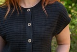 A cozy classic with a modern twist. This sleeveless sweater vest features a soft knit texture, button-up front, and a relaxed yet flattering fit. Perfect for layering over crisp shirts or wearing solo for a minimalist look, it adds just the right amount of structure and charm to any outfit. Style it with tailored trousers or denim for an effortlessly put-together vibe.
