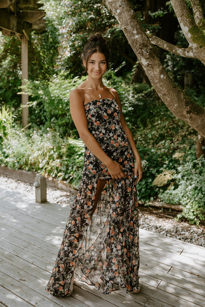 Floral/Black Strapless Maxi