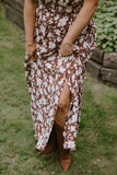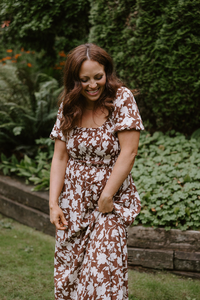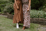 We are head over heels for our fall inspired floral midi dress in the season's hottest colours; brown and cream. This piece is anything but lacking in details, with puff sleeve,  a double elasticated waistline, and a flowy skirt with slit! The earth tones give us major fall photoshoot vibes, but with a Muse twist!