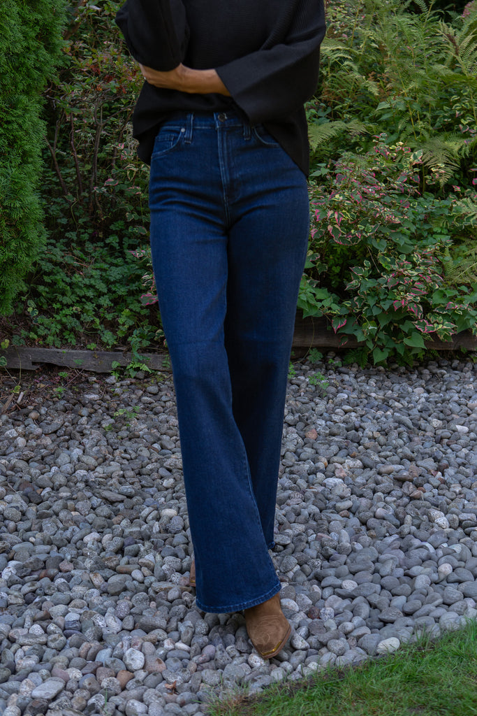 Our wide leg denim is sure to be a huge hit for fall, and our new dark denim colour is sure to be another client and staff favourite. This style features a high waisted rise and no distressing. It can be paired with anything from a simple tee, or chunky knit or even a festive blouse! The possibilities to style this denim are truly endless from casual to dressy!