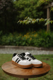 Retro-inspired design with contrast double side stripes and suede toe/heel accents