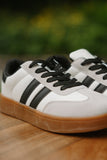 Step into classic comfort with our Retro Stripe Sneakers — a throwback silhouette designed for modern life. These low-top kicks feature a retro-inspired panel design with bold double side stripes, soft suede accents, and a timeless gum rubber sole. The cushioned insole keeps every step comfortable, while the lace-up front ensures a secure, customizable fit.