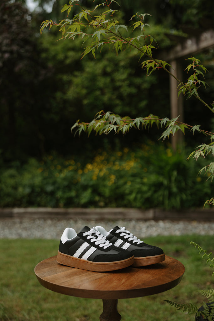 Step into classic comfort with our Retro Stripe Sneakers — a throwback silhouette designed for modern life. These low-top kicks feature a retro-inspired panel design with bold double side stripes, soft suede accents, and a timeless gum rubber sole. The cushioned insole keeps every step comfortable, while the lace-up front ensures a secure, customizable fit.