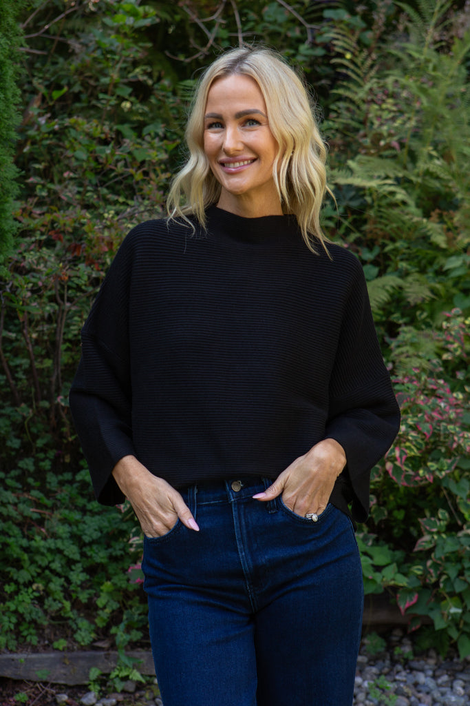 • 3/4 Ribbed Sweater - Black