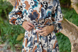 Sleek, soft, and effortlessly refined, this satin paisley button-down dress brings a vintage-inspired print to a timeless silhouette. Crafted from fluid satin with a subtle sheen, it features a collared neckline, button-down front, and a relaxed yet flattering fit. The paisley print adds a touch of bohemian elegance, perfect for both day-to-night transitions and elevated everyday wear.