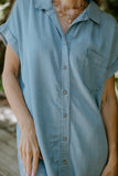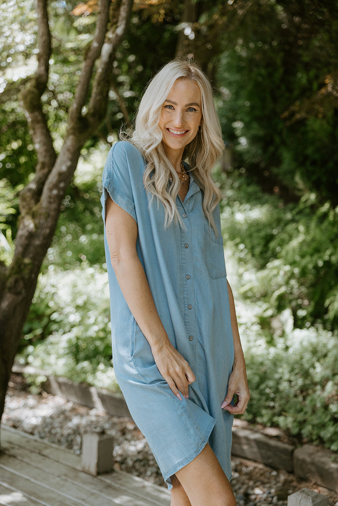Effortlessly timeless, this classic denim dress features a loose silhouette, button-front closure, and tailored details for everyday ease. It’s the perfect blend of casual comfort and polished style - wear it solo or layer it year-round.