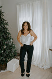 Our satin cami is the definition of effortless polish. Designed with a silky-soft finish and delicate drape, it’s the perfect layering piece or stand-alone staple. Style it with tailored trousers for the evening or your favorite denim for day time.