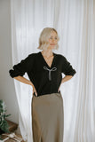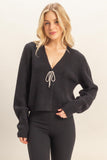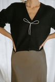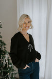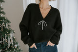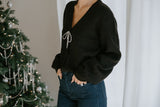 Celebrate the season in style with The Holiday Cardigan — a sparkling, show-stopping knit that’s as festive as it is cozy. Designed with a flattering V-neckline and snap-button front, this cardigan features a charming silver glittery bow for a touch of whimsical sparkle. The bow catches the light beautifully, making it the perfect statement piece for holiday gatherings, parties, or cozy nights by the fire.