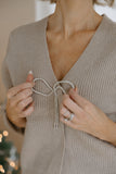 Celebrate the season in style with The Holiday Cardigan — a sparkling, show-stopping knit that’s as festive as it is cozy. Designed with a flattering V-neckline and snap-button front, this cardigan features a charming silver glittery bow for a touch of whimsical sparkle. The bow catches the light beautifully, making it the perfect statement piece for holiday gatherings, parties, or cozy nights by the fire.