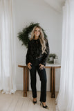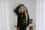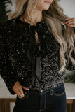 Sequin Bow Tie Front Shirt/Jacket - Black
