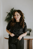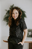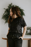 Shine made simple. This t-shirt style top is covered in light-catching sequins, giving a classic silhouette a festive, elevated twist. The relaxed fit keeps it easy and comfortable, while the shimmering finish instantly dresses up any look. Pair it with denim for a casual sparkle or skirts for holiday-ready glam.