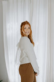 A classic with a charming twist, this V-neck sweater features a soft knit body and an elegant bow detail at the back for a hint of romance. The relaxed fit and gentle drape make it perfect for layering, while the open back adds a touch of unexpected femininity. Effortlessly polished for day-to-night styling.