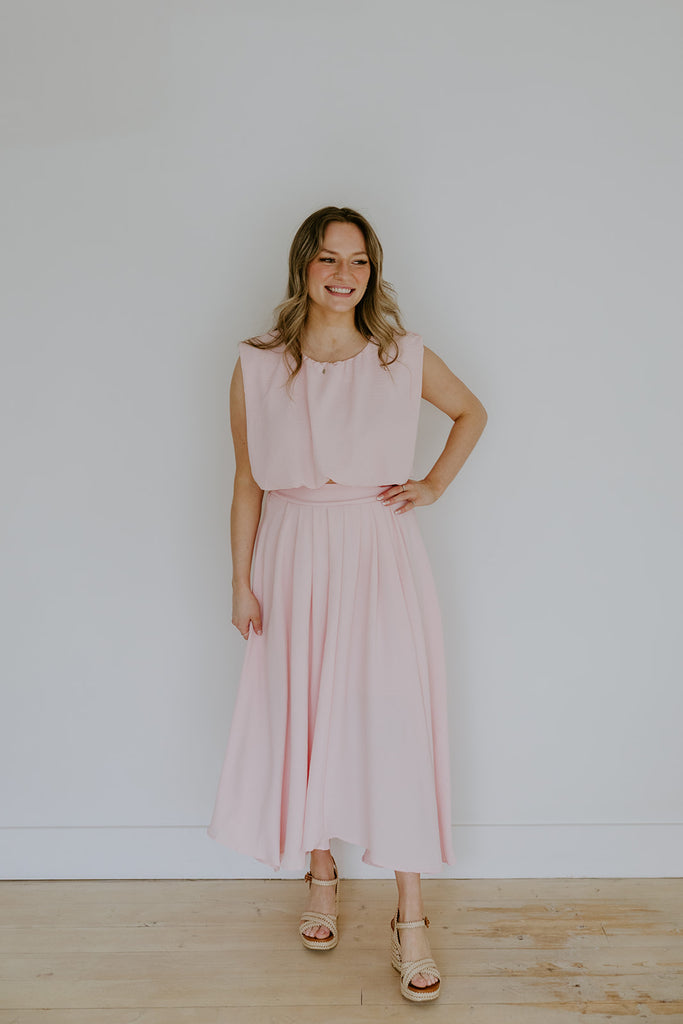 Bubble Top & Flowy Midi Skirt Set - Pink