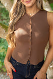 The perfect blend of structure and softness, this ribbed knit tank vest is your new layering essential. Designed with a flattering, body-hugging fit and a classic button-down front, it works beautifully on its own or styled under your favorite blazer. The textured rib knit adds subtle detail, while the versatile silhouette makes it easy to dress up or down.