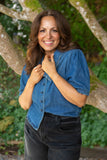 Effortlessly blending classic denim with modern details, this V-neck puff sleeve denim shirt is a fresh take on your everyday essential. Crafted from soft, durable denim, it features a flattering V-neckline and statement puff sleeves that add volume and a touch of femininity. The relaxed fit makes it perfect for tucking it into jeans or pairing it with a skirt.