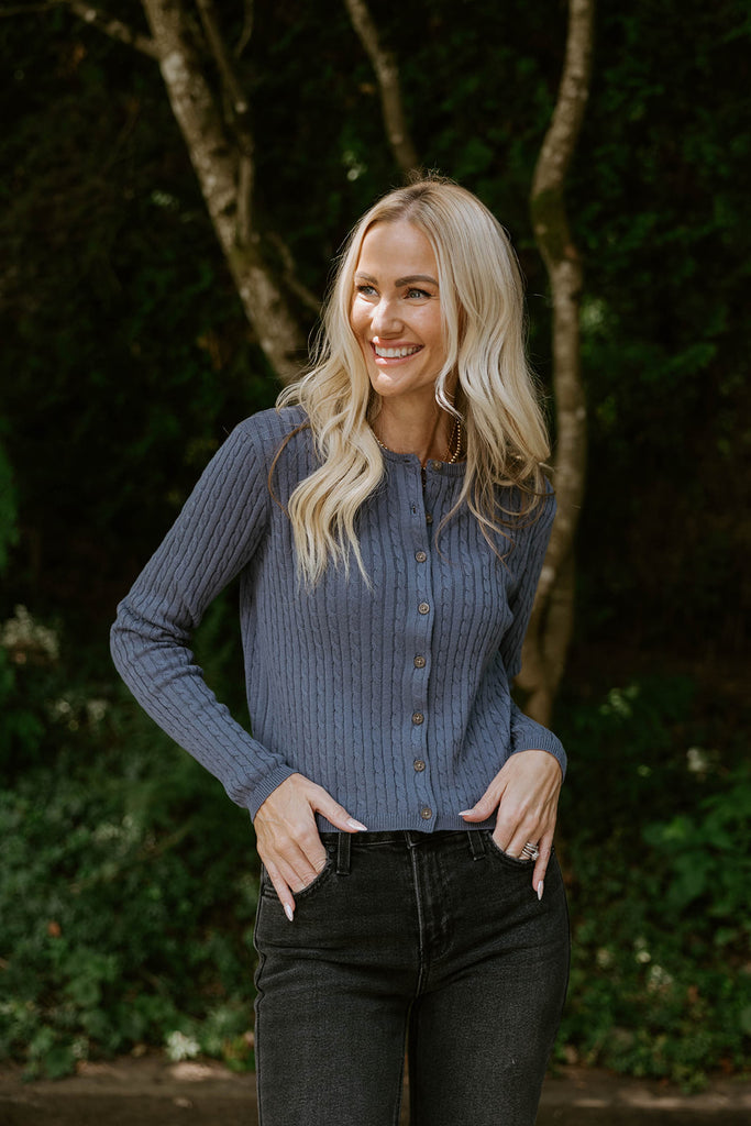 Cable Knit Lightweight Cardigan - Dusty Navy