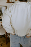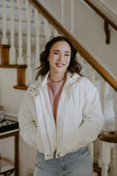 This effortlessly cool jacket is a modern wardrobe staple with timeless appeal. Designed in a soft neutral tone, it features a front zipper closure complemented by snap-button details for versatile styling and easy layering. The functional pockets add both practicality and a relaxed utility feel, while the elasticized hem creates a flattering, slightly cropped silhouette. Finished with a structured collar and lightweight fabric, this jacket transitions seamlessly from casual daytime wear to polished off-duty looks. Perfect paired with denim or layered over everyday basics for an elevated, laid-back vibe.