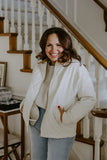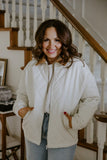 Designed with a flattering, easy fit, this jacket includes a full zip front and practical pockets because style should always be functional. The soft ivory tone pairs beautifully with denim, knits, or tailored pieces, making it a versatile staple you’ll reach for on repeat.