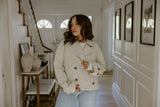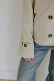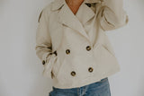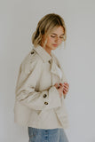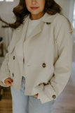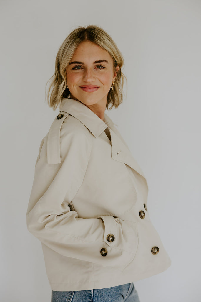 This short trench coat brings a modern twist to a classic silhouette. With its crisp shape and easy drape, it adds instant sophistication to denim, trousers, and dresses alike. The ideal piece for transitional weather and styled-up days.