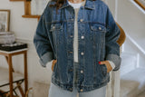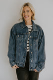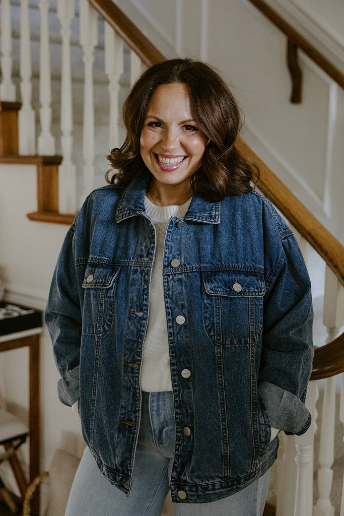 Meet your new go-to: the perfect denim jacket, crafted to effortlessly elevate every look. With a classic silhouette, oversized fit, and dark wash, this jacket strikes the ideal balance between timeless and modern. Durable yet soft, it layers seamlessly over everything from tees to dresses, making it the ultimate versatile staple.