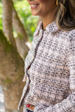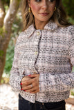 Classic sophistication meets modern style in this timeless tweed jacket. Crafted from textured woven fabric, it features a structured silhouette with tailored details. Perfect for layering over dresses, blouses, or casual tees, this jacket adds polish and refinement to any outfit. Elevate your wardrobe with this effortlessly chic staple - ideal for workdays, weekends, or special occasions.