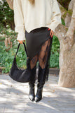 Delicate meets modern. This skirt features intricate lace detailing with a striking asymmetrical hem, creating movement and visual interest with every step. Elegant yet edgy, it pairs beautifully with simple tops or statement blouses for a look that’s effortlessly sophisticated.