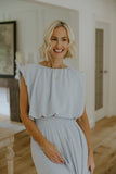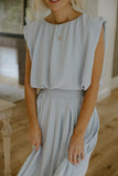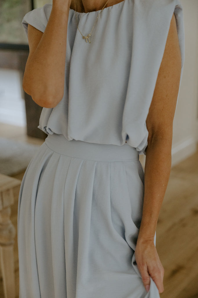 Bubble Top & Flowy Midi Skirt Set - Blue