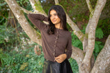 Timeless and sophisticated, this cardigan is elevated with gleaming gold buttons that add a touch of luxe to your everyday knitwear. Crafted with soft, cozy fabric and a flattering fit, it’s perfect for layering over dresses or pairing with your favorite jeans. A refined staple that effortlessly blends classic charm with modern polish.